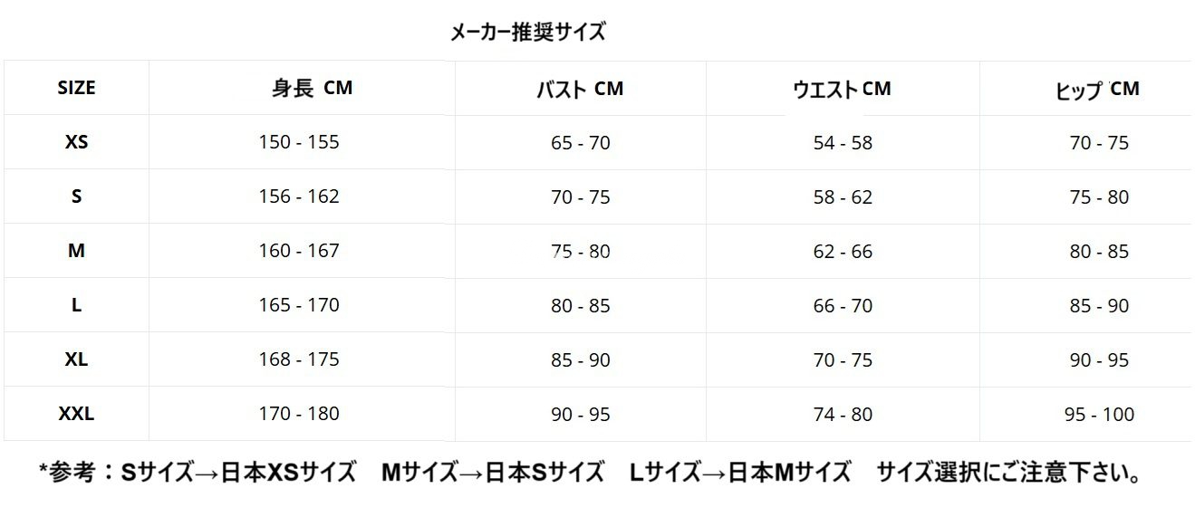 *当メーカーは、日本サイズよりワンサイズ小さ目なサイズ感です。日本でSサイズをご着用の方はMサイズを、日本Mサイズの方はLサイズをお選び下さい。