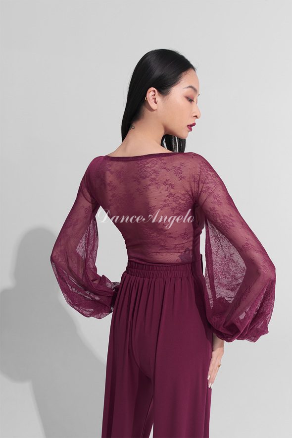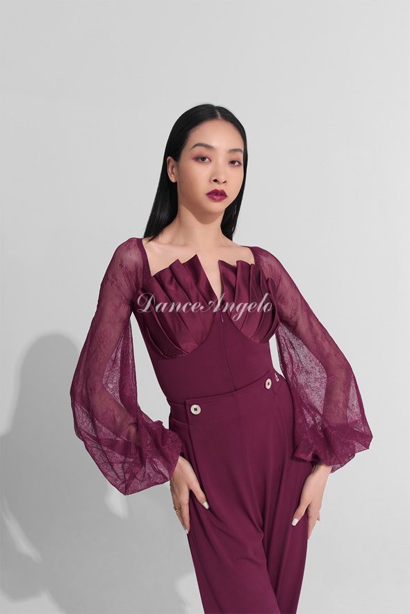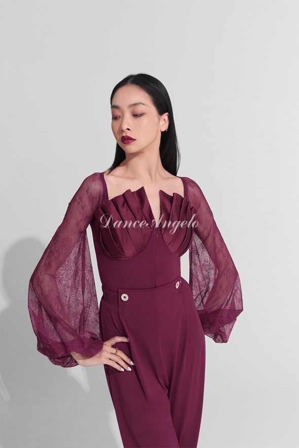 光沢あるサテンプリーツの胸元が印象的なレオタードです。