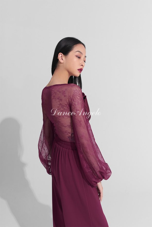 レースで作られたフンワリしたスリーブがフェミニンな印象を与えます。