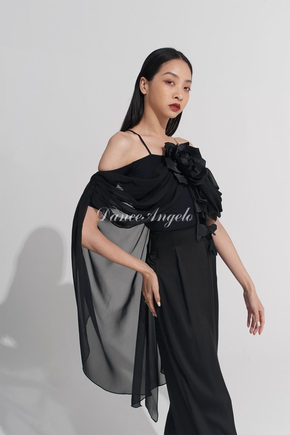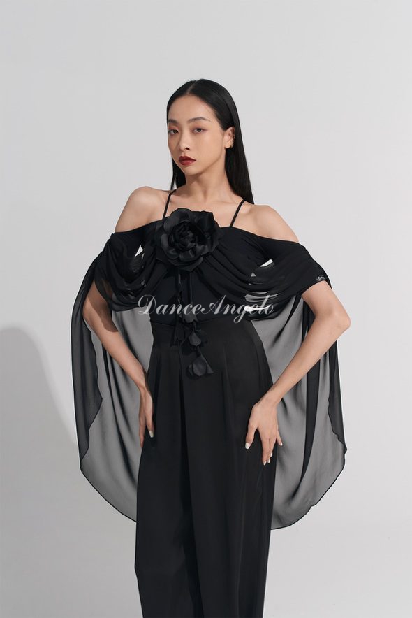 フロントからバックにかけてフンワリと背中に掛かるフロート、そして胸元のフラワーがとても華やでフェミニンなレオタードです。
