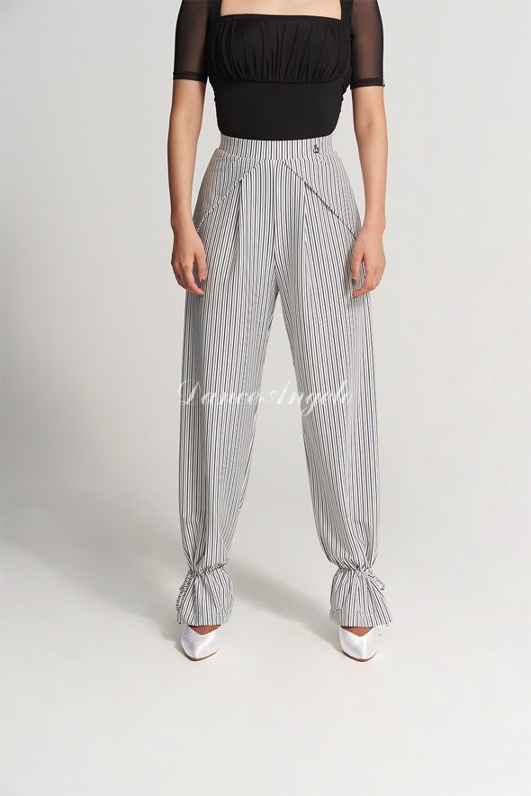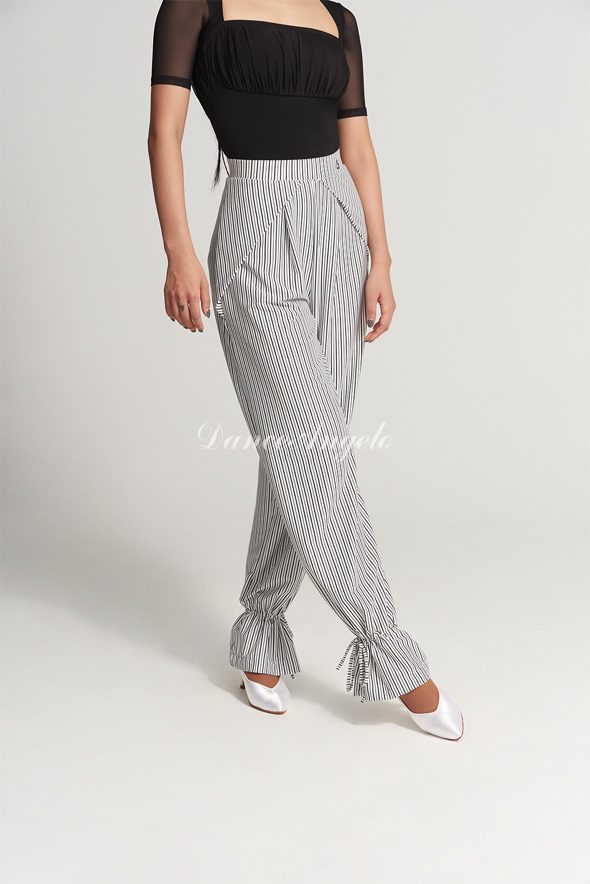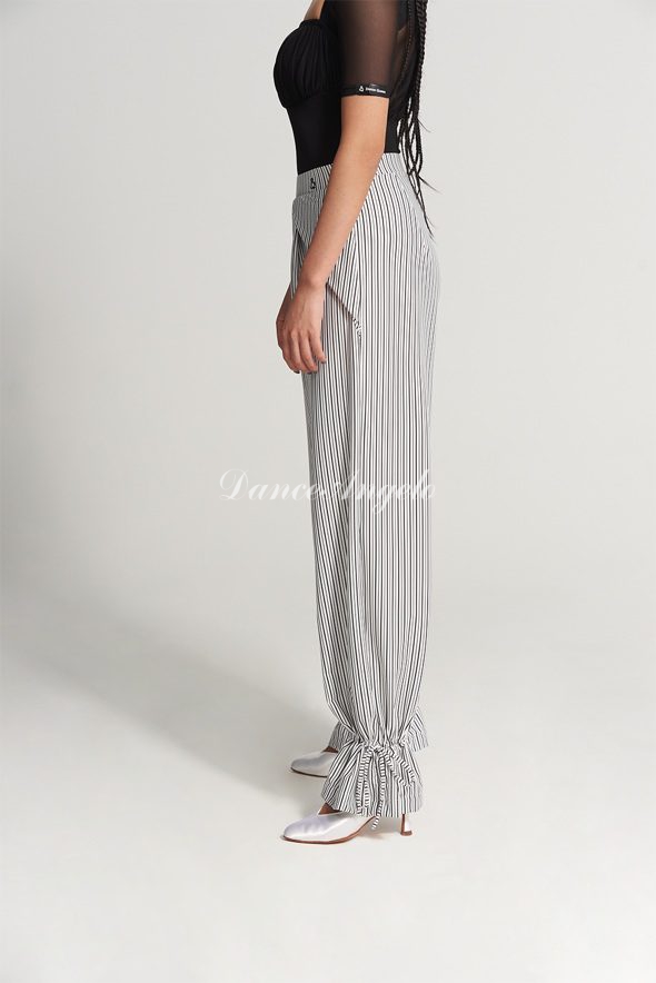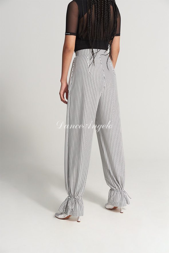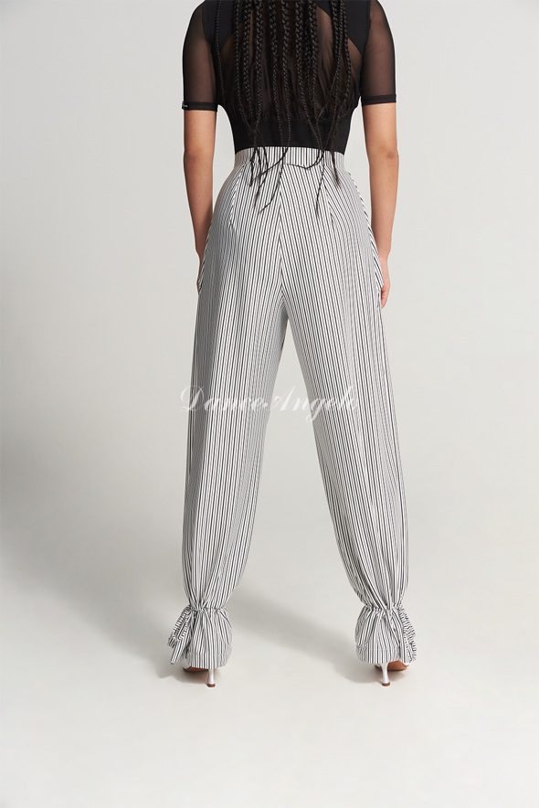 紐を結ぶと裾がフリルになるオシャレなパンツです。
