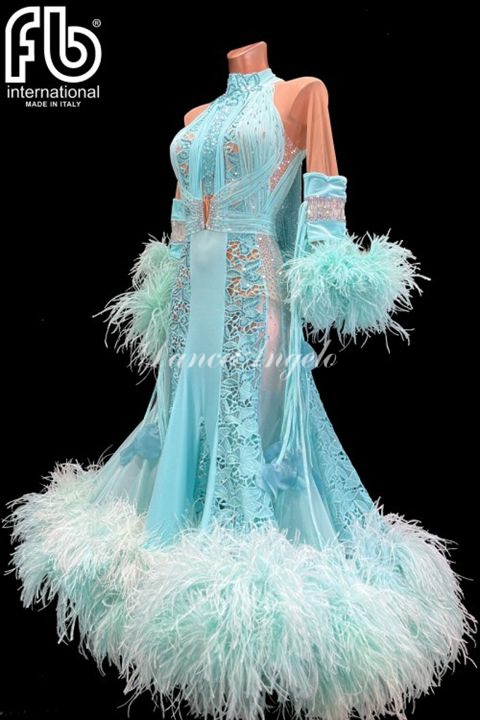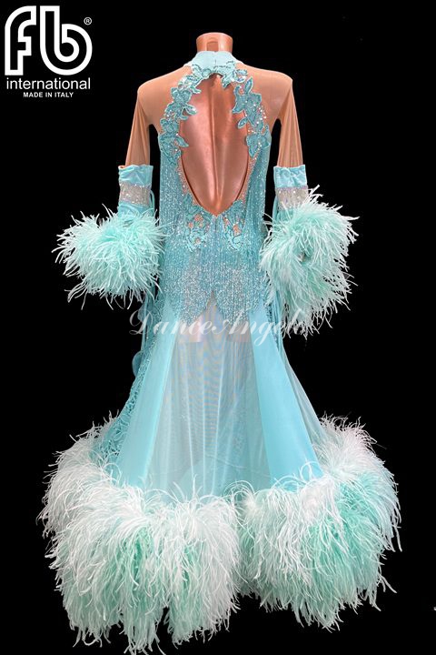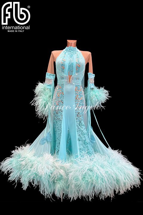 ゴージャスで大変フロア映えするアイスブルーのスタンダードドレスです。