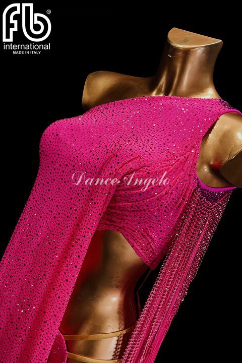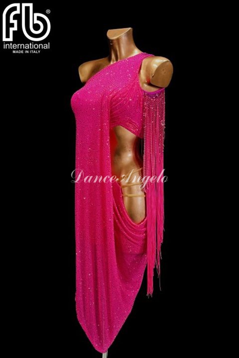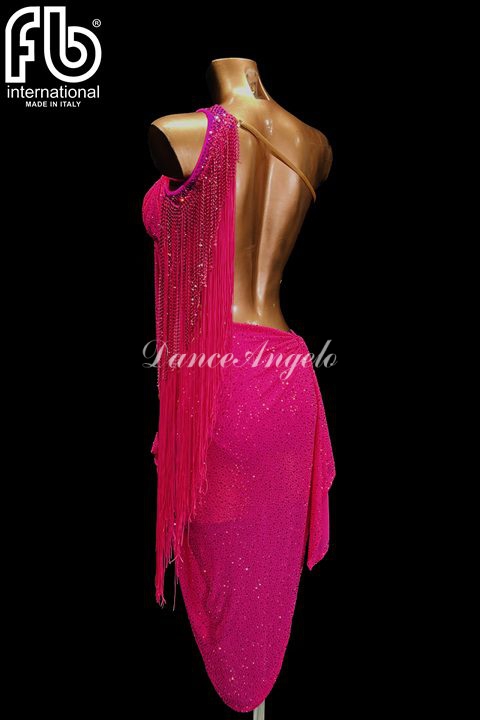 ストーンが散りばめられた効果な生地を使ったフューシャピンクのラテンドレスです。