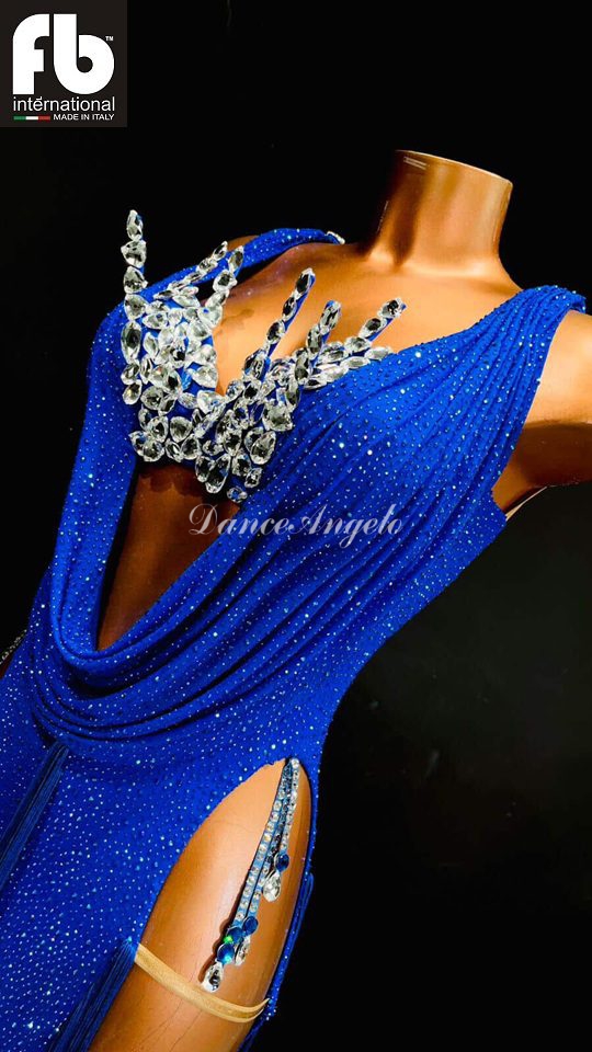 スタイリッシュで個性的なコバルトブルーのラテンドレスです。