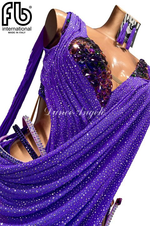 ストーンが散りばめられた生地を使ったパープルカラーのラテンドレスです。